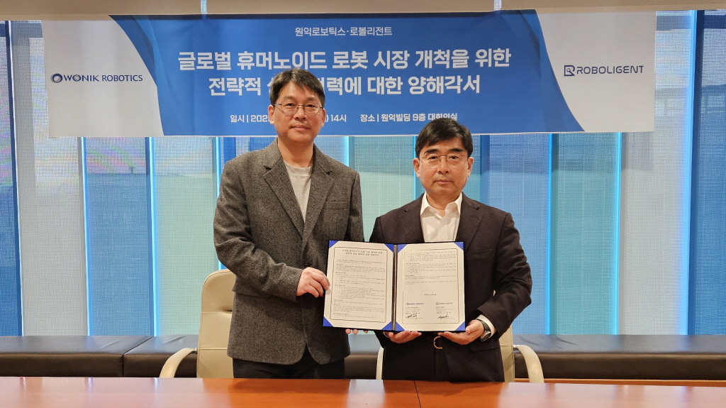 AI 기반 모바일 휴머노이드 로봇 개발 기업 로볼리전트(Roboligent)가 로봇 핸드 및 로봇 자동화 전문기업 원익로보틱스(Wonik Robotics, 대표 김학래)와 휴머노이드 로봇 기술에 손을 맞잡았다.